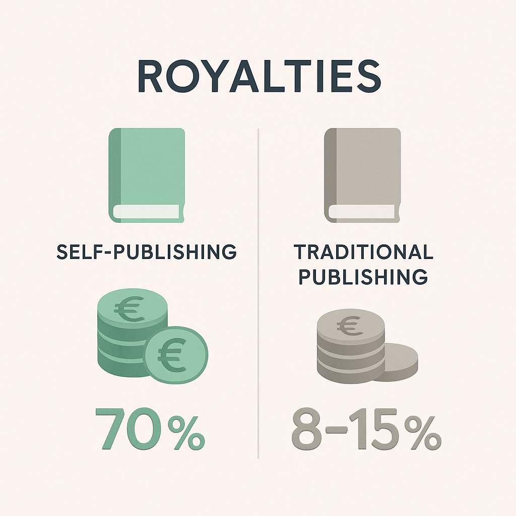 | Royalties | 35-70% du prix de vente | 8-15% du prix public |